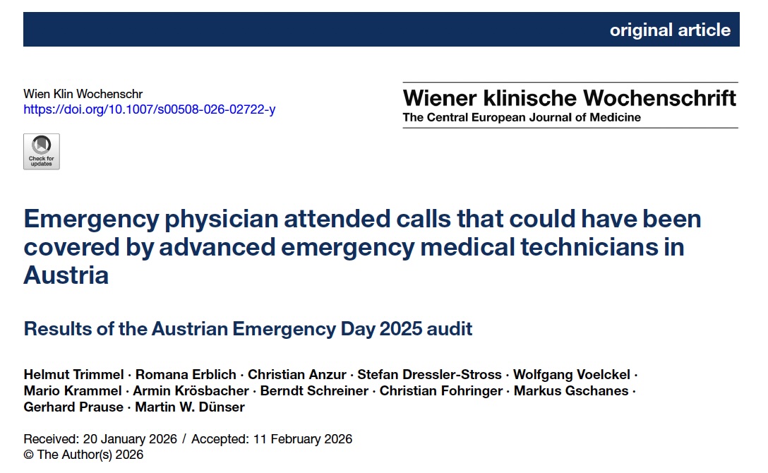 Wie viele arztbegleitete Einsätze in Österreich könnten von gut ausgebildeten Notfallsanitäter:innen übernommen werden, ohne die Patientensicherheit zu gefährden? Eine aktuelle österreichweite Studie („Emergency physician attended calls that could have been covered by advanced emergency medical technicians in Austria“) ist dieser Frage nachgegangen.